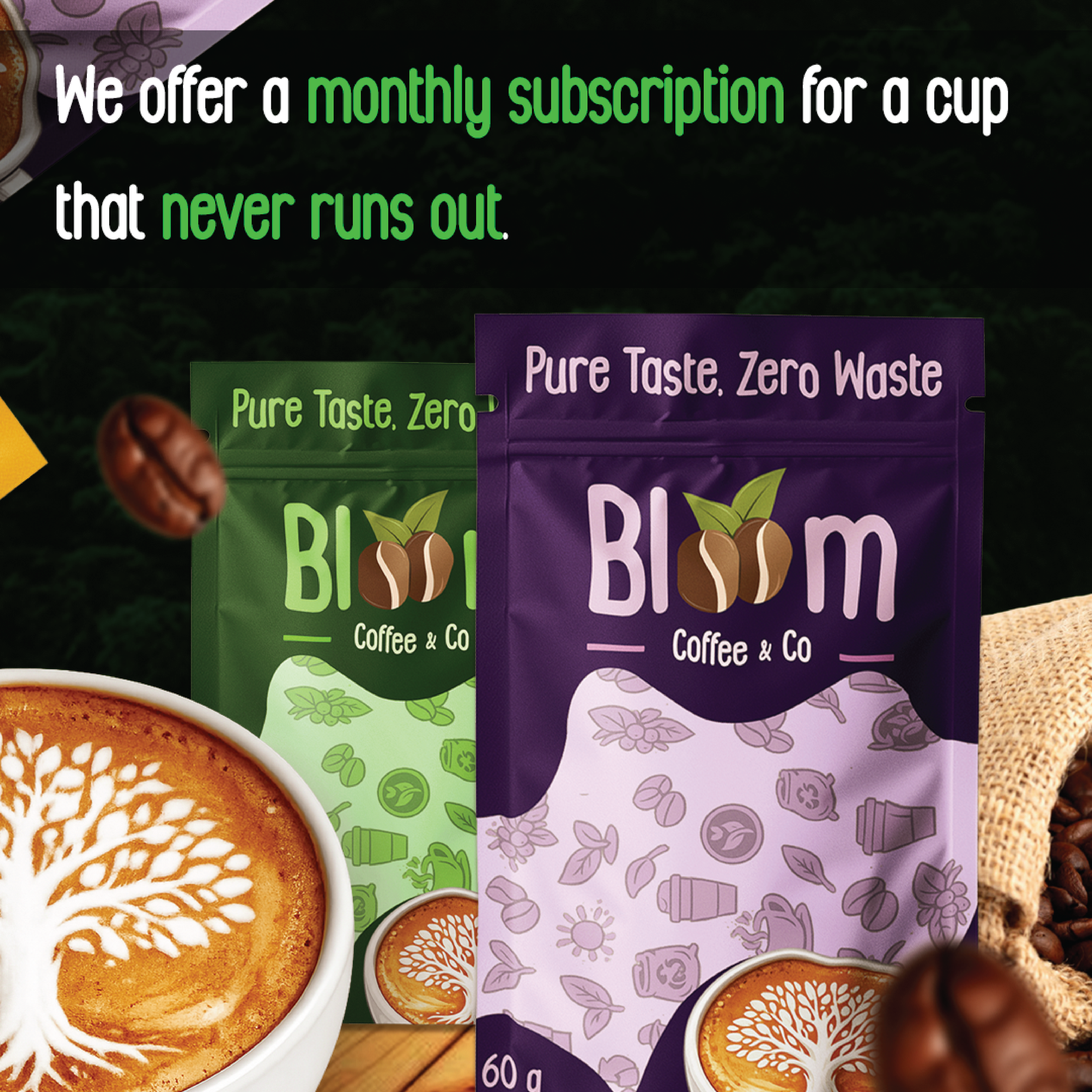 For this “concept to market” project, I was assigned to create a fictional brand and develop its social media marketing. I came up with Bloom Coffee & Co., a monthly subscription service that delivers custom-blended coffee straight to your door.